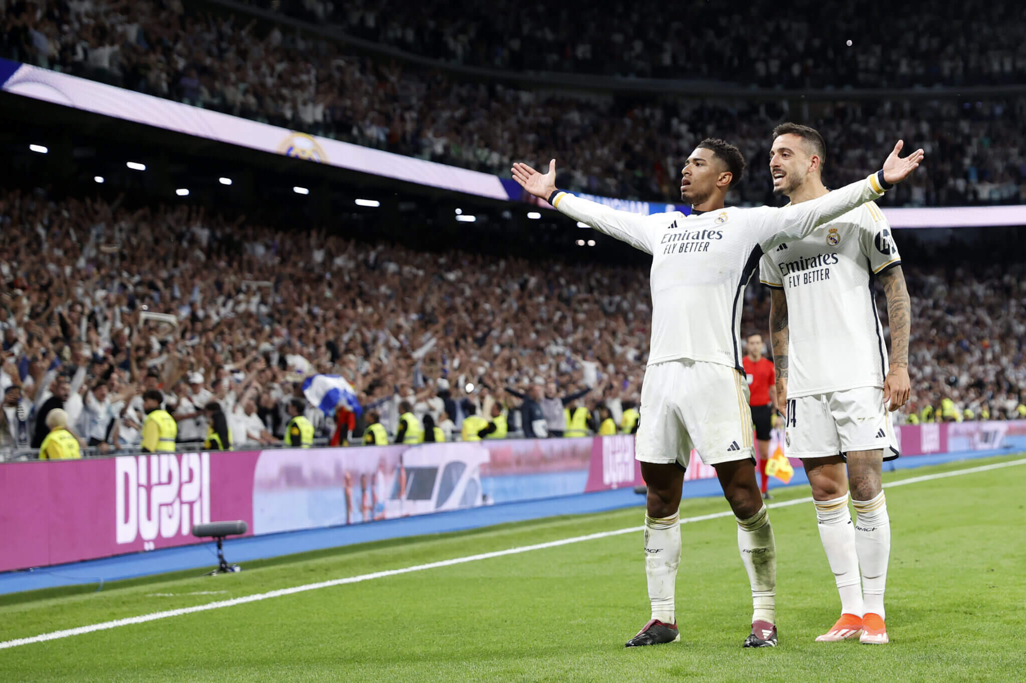 En el minuto 35, Soto Grado señaló penalti a favor del Atlético de Madrid por una falta de Aurélien Tchouaméni sobre Samuel Lino. El lanzamiento desde los once metros fue convertido por Julián Álvarez.