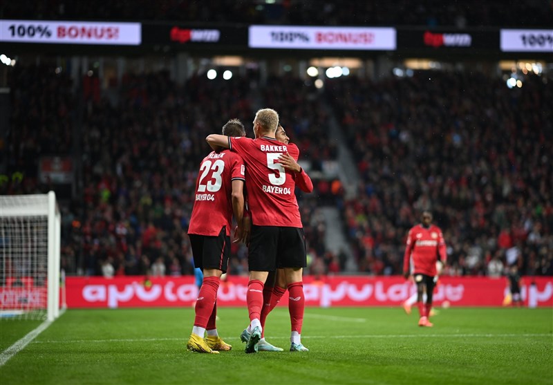 Christian Kofane anota el segundo gol del Leverkusen.